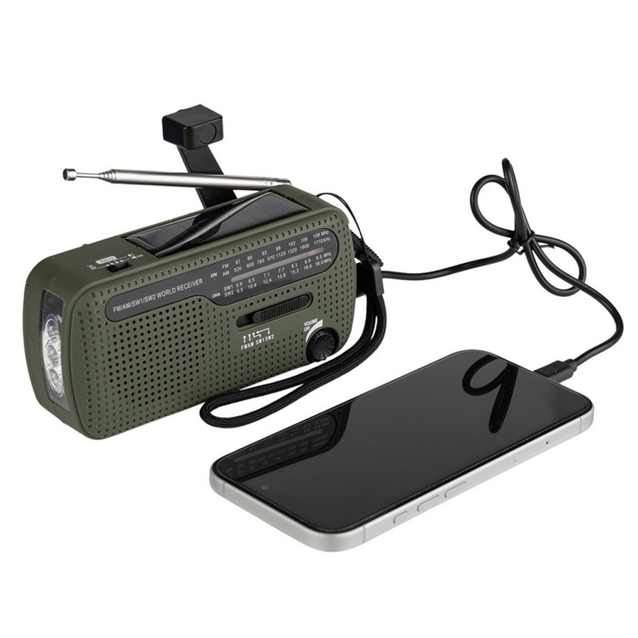 Altid forbundet, selv i de mest afsidesliggende områder. Denne Survival Radio er en multifunktionel nødradio, ideel til overlevelse, udendørs brug og nødsituationer. Med flere frekvensbånd (FM/AM/SW1/SW2) holder du dig informeret, uanset hvor du er, med nyheder, vejr og advarsler.