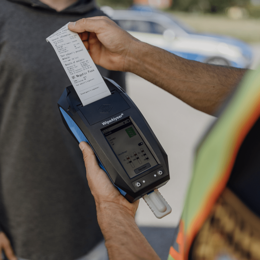 Securetec Wipe Analyser er en bærbar enhed til detektion af narkotika i kombination med DrugWipe®. WipeAlyser er ideel til screening langs vejene og narkotikascreening på arbejdspladsen.